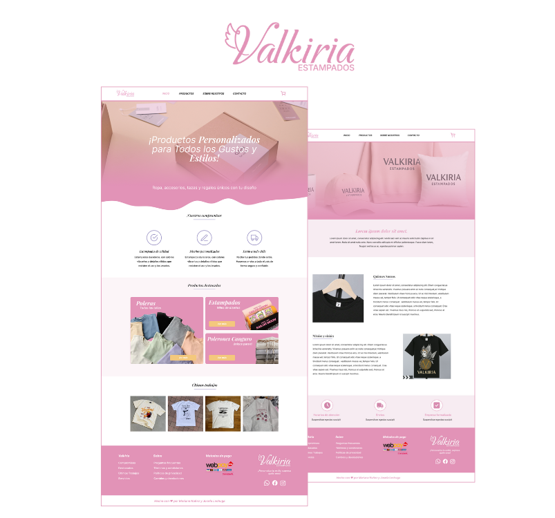Durante mi práctica profesional, tuve la oportunidad de trabajar en la creación y desarrollo de un sitio web desde cero para un emprendimiento denominado como estampados Valkiria, el cual se dedica a la venta de productos personalizados. Como emprendimiento ya poseían su audiencia y presencia en redes sociales, pero requerían de una nueva herramienta digital, la cual permita potenciar sus ventas y dar a conocerse como emprendimiento.